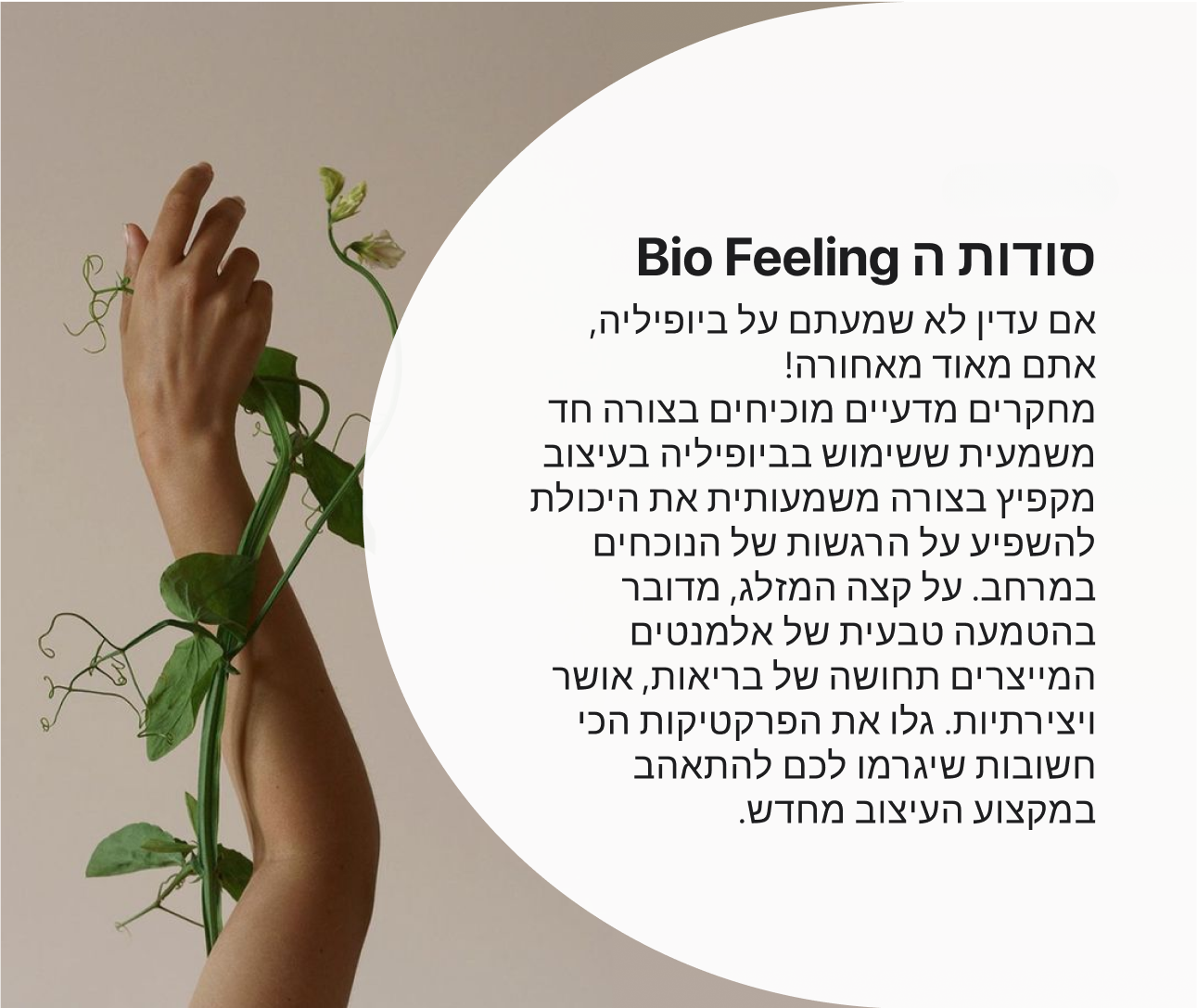 אנחנו חיים בעידן החדש של עיצוב, עידן בו אתם נדרשים לעצב חוויה ולא רק את החלל. הרעיון בעיצוב הוא היכולת לייצר חוויה חדשנית בתוך המרחב, חוויה מוגדרת מראש ומתוכננת לפרטי פרטים בעזרת אלמנטים שמגרים את האזורים המדויקים במח ויוצרים את התודעה הרצויה.